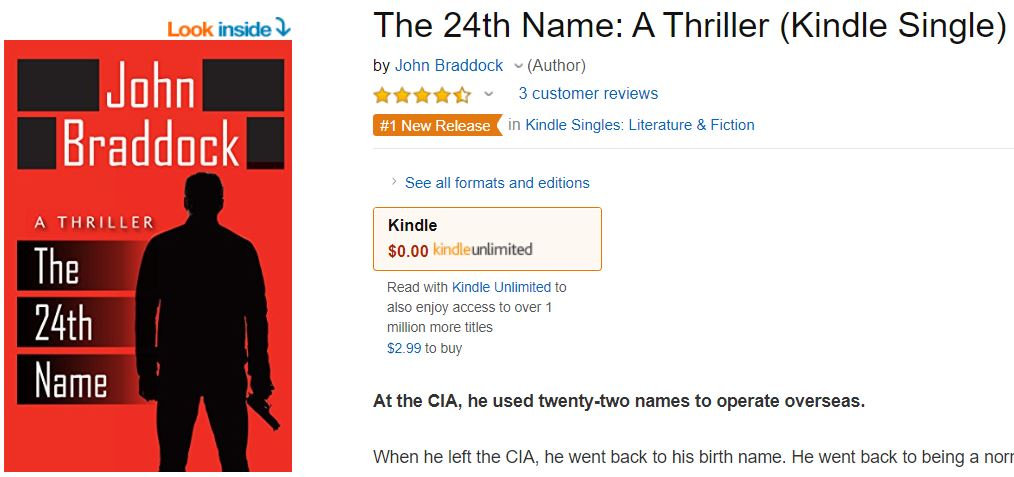 I wrote a new short thriller called The 24th Name. It's the #1 new release in Kindle Singles fiction: