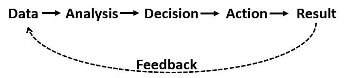 In the DADA model (and Boyd’s OODA Loop), you collect data after each action. You analyze that data to make a better decision and to take a better action next time. You loop through this process: